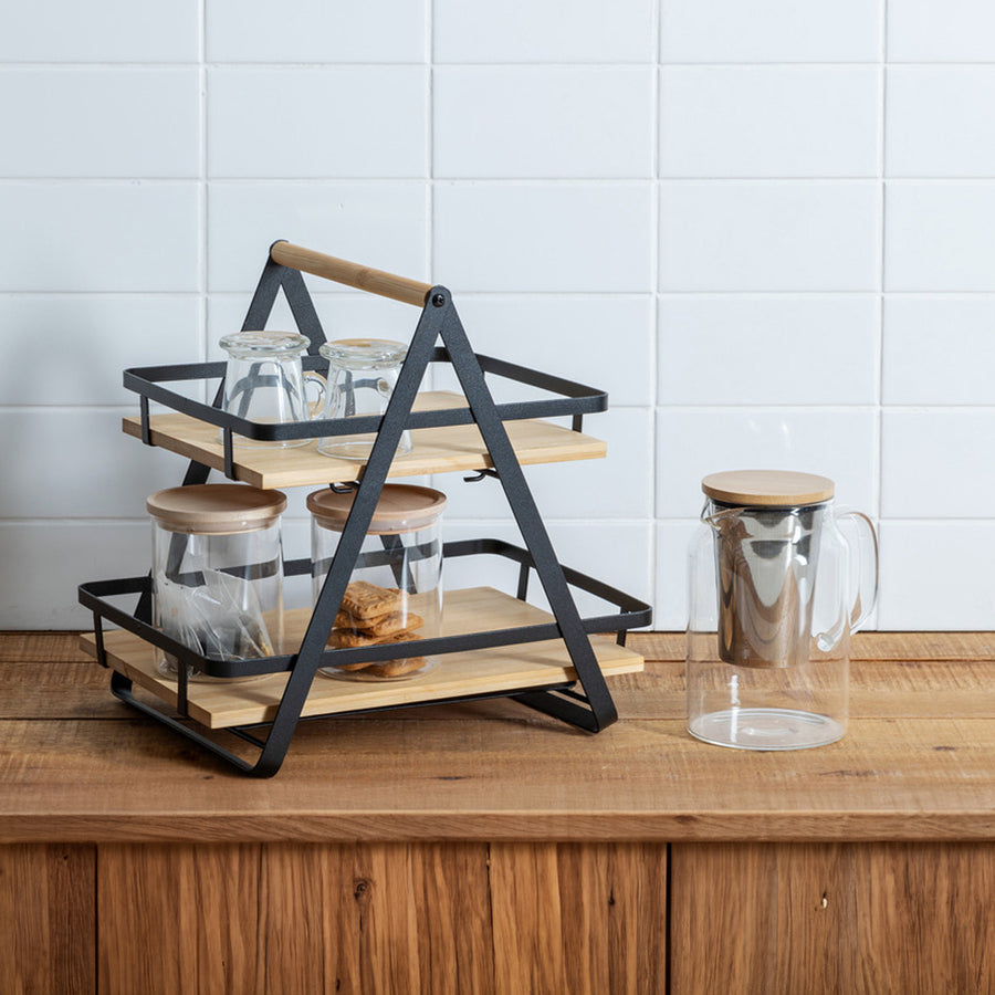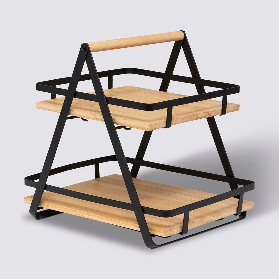 Étagère 2 Niveaux avec Anse – Bambou & Acier