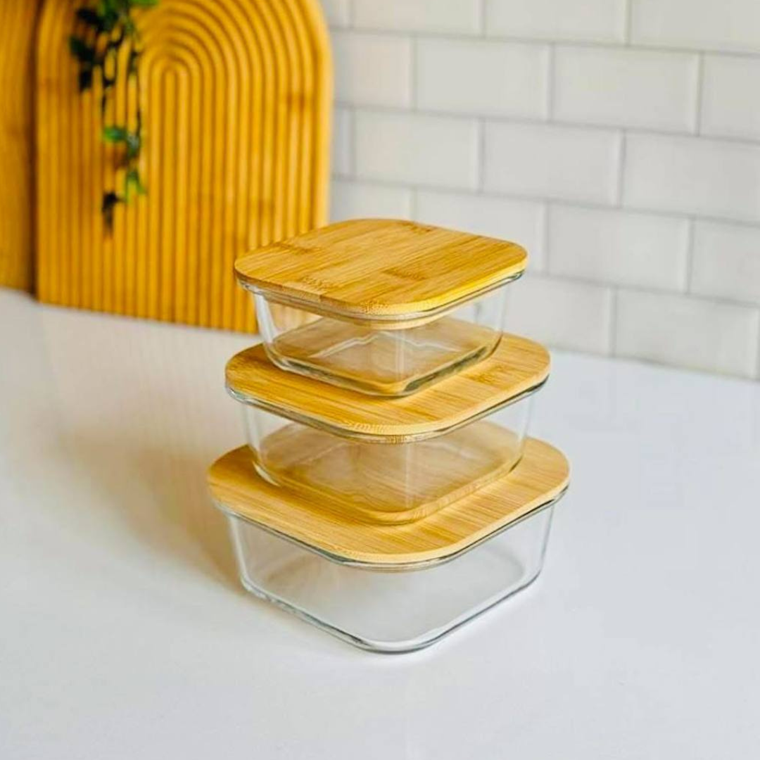 Organisez et conservez vos aliments avec élégance grâce à ce lot de 3 boîtes de conservation en verre.